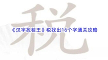 汉字找茬王税找出16个字这一关中,需要玩家们通过分解税这一个字,得到16个新的汉字才能通关。虽然税的笔画很多,可以分析出很多可能,但是还是难倒了一众的小伙伴。那么汉字找茬王税找出1