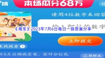 淘宝每天都有新的问题,用户们只要回答正确的答案,就可以去参加对应的活动,获得瓜分68万的机会。那么请用4位数字来回答是什么?淘宝2023年7月6日每日一猜答案是什么呢?下面小编给大